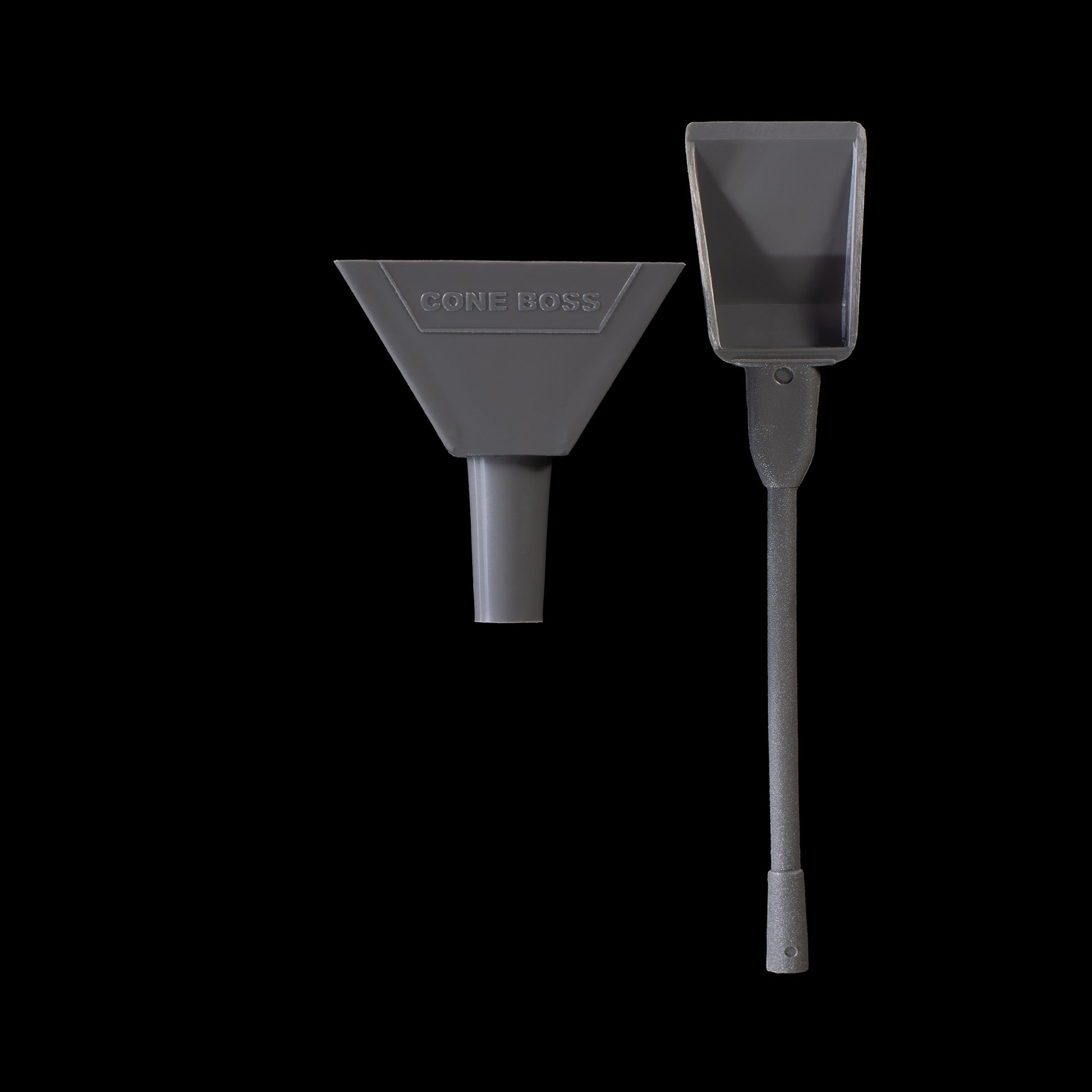 Introducing the Cone Boss - the perfect tool for the perfect cone! With its beveled edge scoop, flower shovel and packer, you can now load, fill, and pack cones with precision and speed. Say goodbye to messy and uneven cones. Upgrade to the Cone Boss for perfectly crafted cones every time.